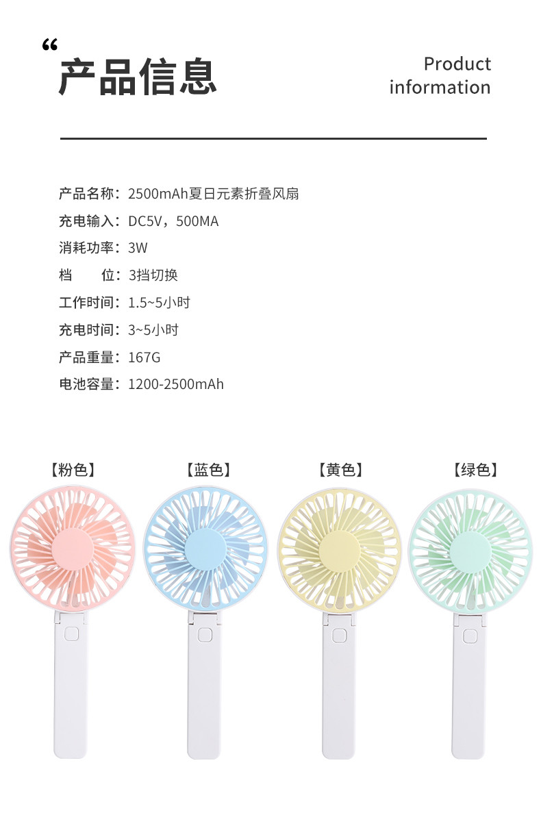 六竖 折叠小风扇 颜色随机 N12