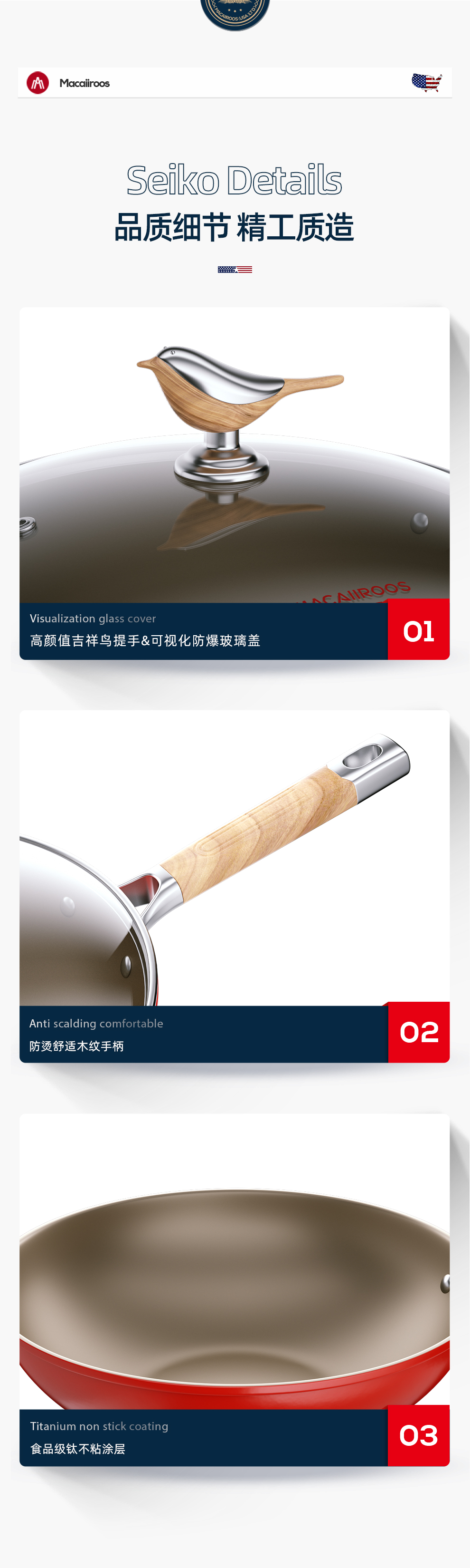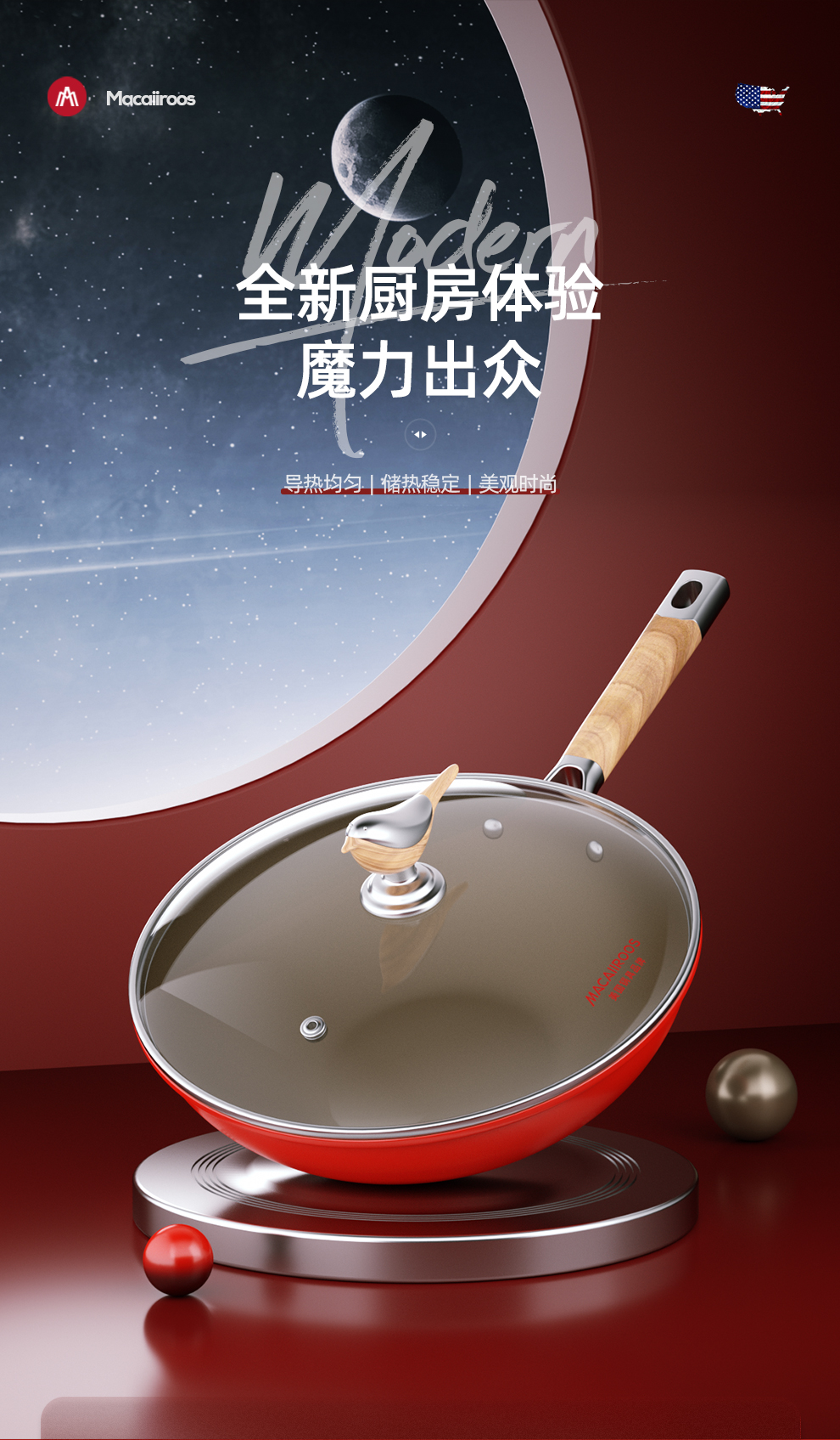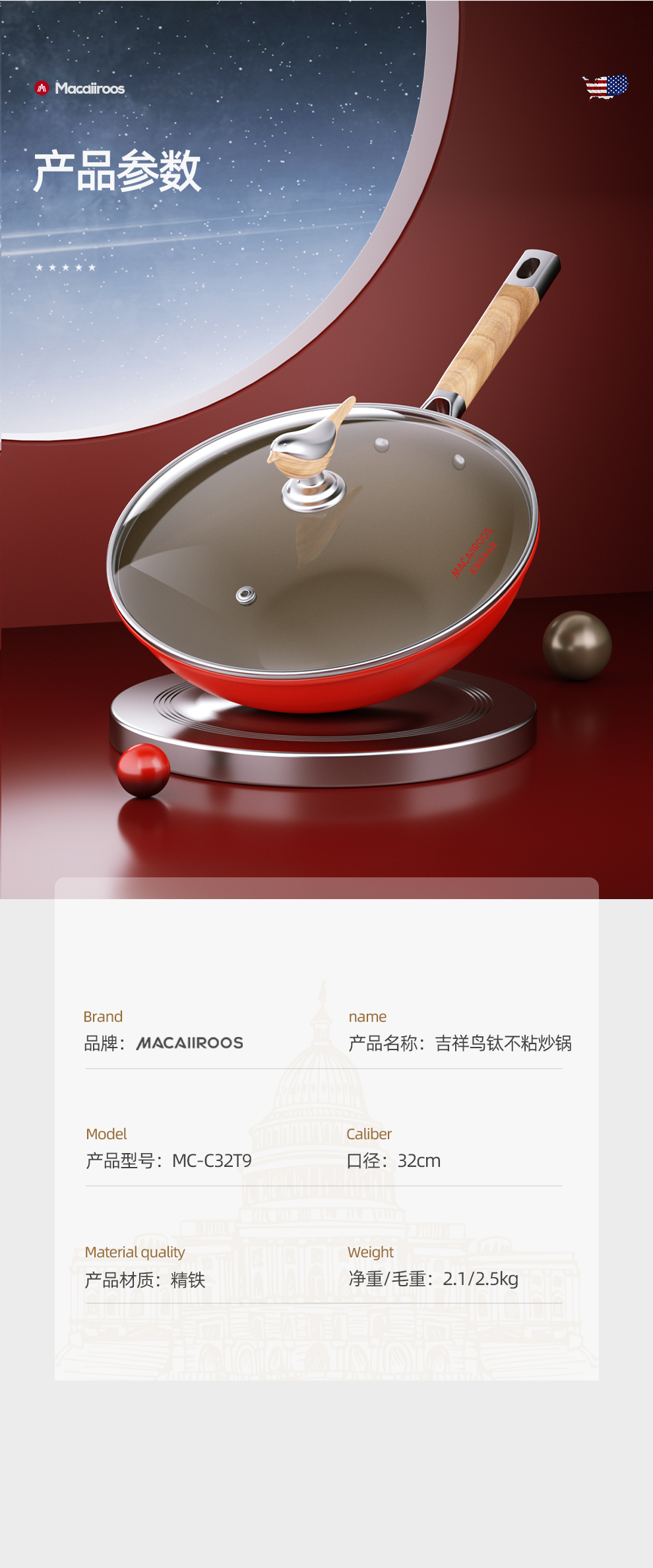 迈卡罗 吉祥鸟钛不粘炒锅 MC-C32T9