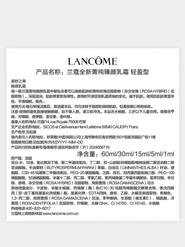 兰蔻 菁纯面霜清爽 60ml