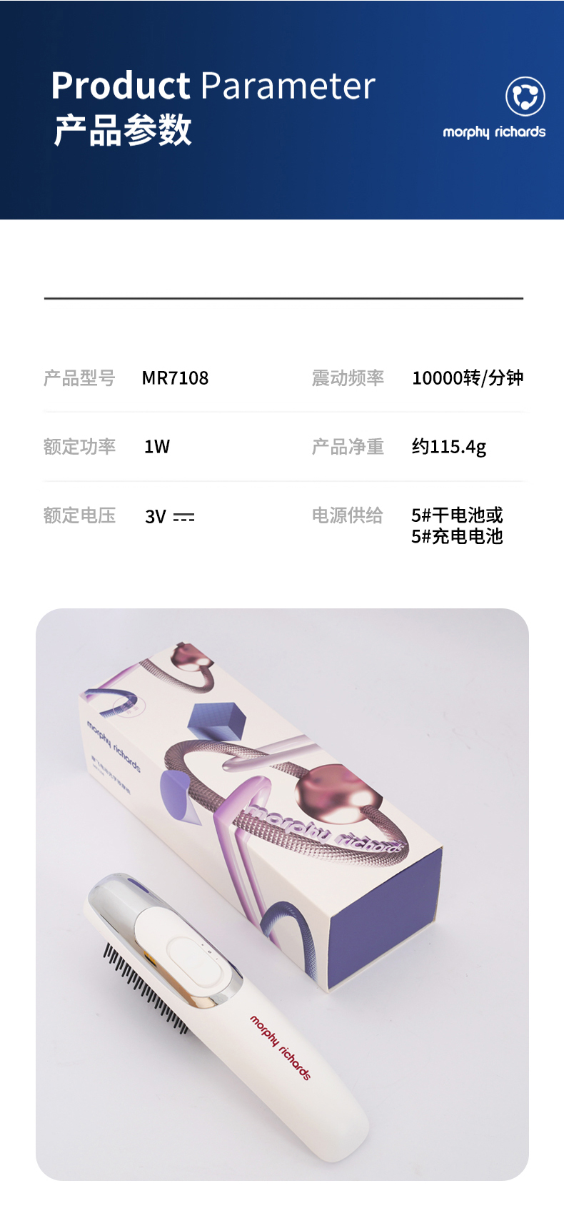 摩飞 电动光学按摩梳 MR7108