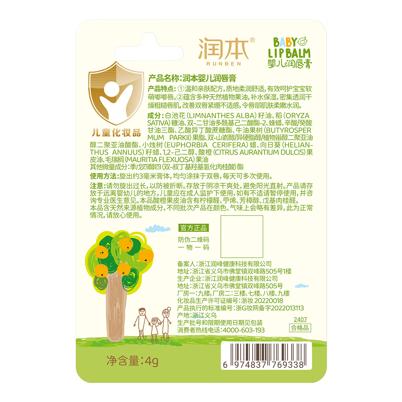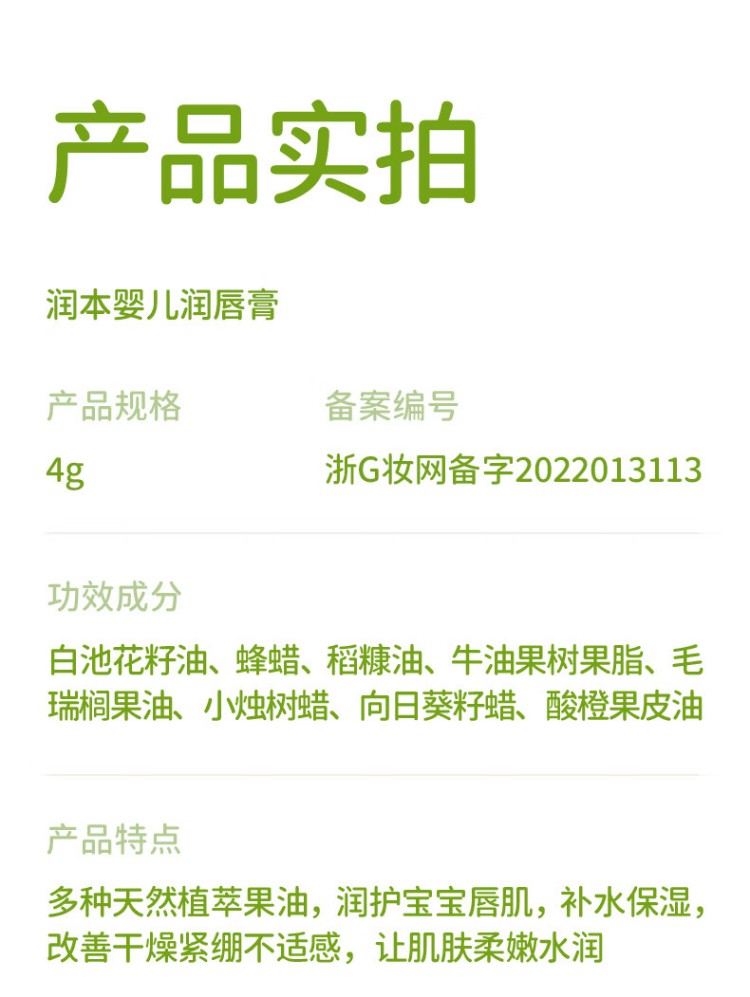 润本 润唇膏 婴儿4g(无香)